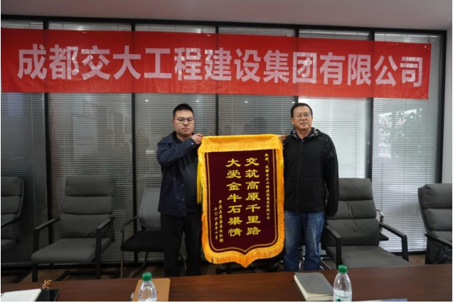 座谈会伊始,石渠县委组织部副部长陈松松向集团公司敬赠锦旗,对公司历年支援石渠县建设的行动表示诚挚谢意。集团董事长代表公司接受了这份饱含深情的荣誉。这面锦旗,既是对交大集团践行社会责任的高度认可,更是对我们未来继续支持地方发展的鞭策与激励。